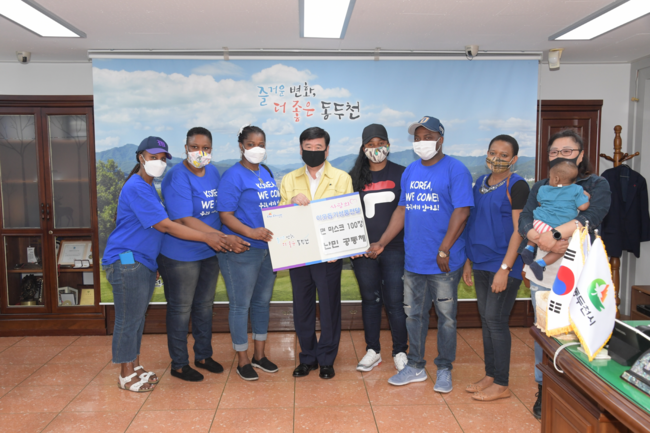<사진/ 동두천 난민공동체, 지난 4일 동두천시청을 방문해 직접 만든 면 마스크 100장 전달>