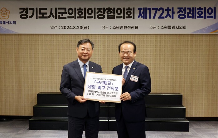 경기도시·군의회의장협의회 이덕수 회장(현 성남시의회 의장)은 8월 29일 「구리대교」명명을 촉구하는 건의문을 금일 국토교통부, 국토지리정보원 등 해당 부처에 전달하였다.
