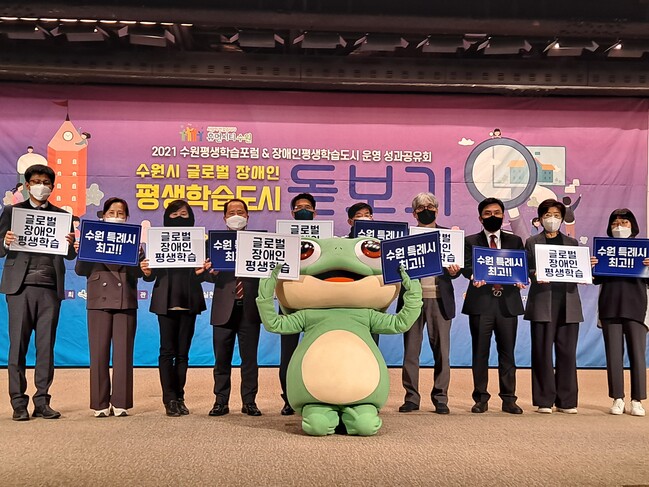 수원시는 1일 오후 1시 영통구 경기도경제과학진흥원 1층 광교홀에서 2021년 수원평생학습포럼·장애인 평생학습도시 운영 성과공유회인 ‘수원시 글로벌 장애인 평생학습도시 돋보기’를 진행했다.
