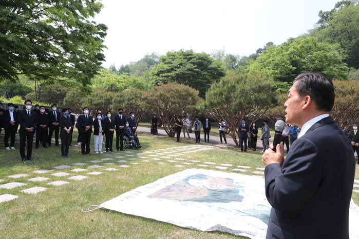 이재준 수원시장 후보가 23일 수원시 연화장에서 열린 故노무현 전 대통령 13주기 공동 추모식에서 한 이야기다.