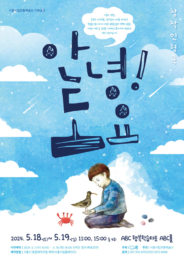 시흥시(시장 임병택)는 5월 가정의 달을 맞아 시흥시립전통예술단이 주관하는 창작인형극 ‘안녕! 도요’를 5월 18일부터 19일까지 이틀간 개최한다.