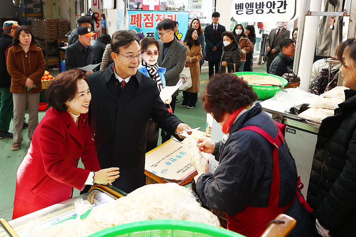 또 김 시장은 전통시장 상인들을 격려하면서 애로사항을 청취하고, 시장을 찾은 시민들과 덕담을 나누며 전통시장 이용을 독려했다.