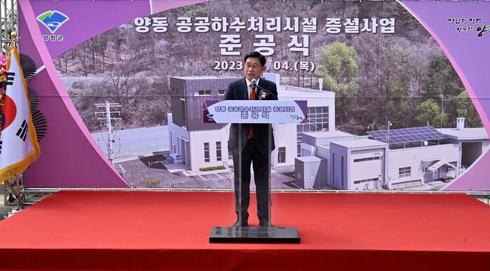 양동 공공하수처리시설 증설사업은 국비 81억원을 포함한 보조금 120억원과 군비 23억원 등 총 143억원의 예산이 투입된 사업으로, 이번 준공을 통해 기존 500㎥/일에서 1,200㎥/일의 하수처리용량을 확보하면서 원활한 하수처리가 가능해졌다.