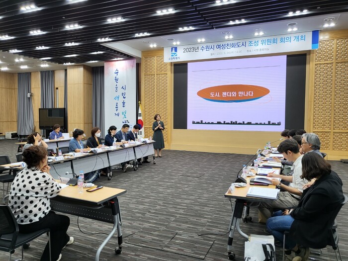 수원시가 24일 ‘수원시 여성친화도시 조성위원회’ 회의를 열고 2023년 여성친화도시 영역별 추진과제의 발전방안을 논의했다.