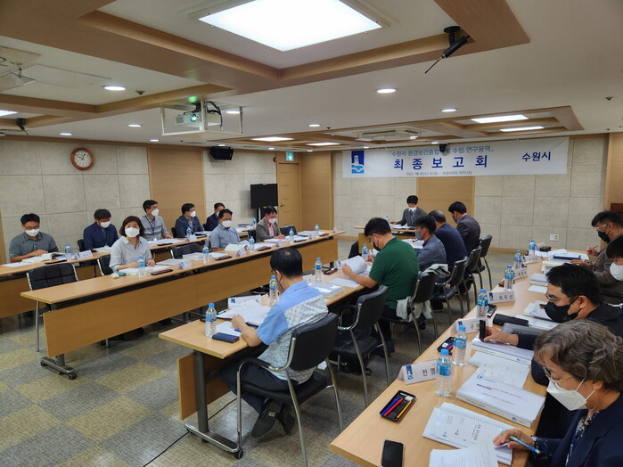 사진/ 지난해 10월 ‘수원시 환경보건종합계획 연구용역 최종보고회’에서 수원시 관계자와 전문가 등이 내용을 논의하고 있다.(사진제공=수원시)