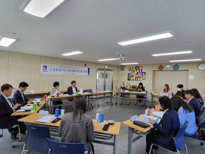 수원시가 9일 수원시다문화가족지원센터에서 ‘찾아가는 다문화 유관기관 소통 간담회’를 열고, 다문화가족과 외국인 주민을 지원하기 위한 주요 정책(사업)과 기관별 주요 업무 등을 공유하고, 효율적인 정책 추진 방안을 논의했다.