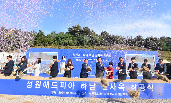 17일 하남시에 따르면 지난 16일 풍산동 616번지에서 이현재 시장, 정대원 성원애드피아 대표를 비롯한 임·직원 및 협력사, 현대건설 관계자 등 100여 명이 참석한 가운데 성원애드피아 하남 신사옥 착공식이 개최됐다.