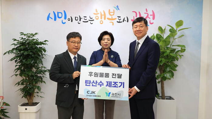2023년 7월 19일, 과천시청 상황실에서 후원 물품 전달식이 열렸다. 이번 행사는 과천지식정보타운 지식8블럭 디테크타워에 사옥을 이전한 CJK얼라이언스(주)에서 과천시 장애인복지관을 위해 데이웰 탄산수 제조기 1대를 기부한 내용을 전달하는 행사였다.
