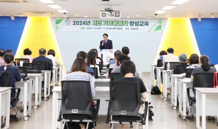 안양시가 22일 13시 30분 시청 상황실에서 일상생활 속 탄소중립 실천 문화 정착 및 확산을 위한 ‘시민 기후활동가 양성 교육’의 개강식을 개최했다.