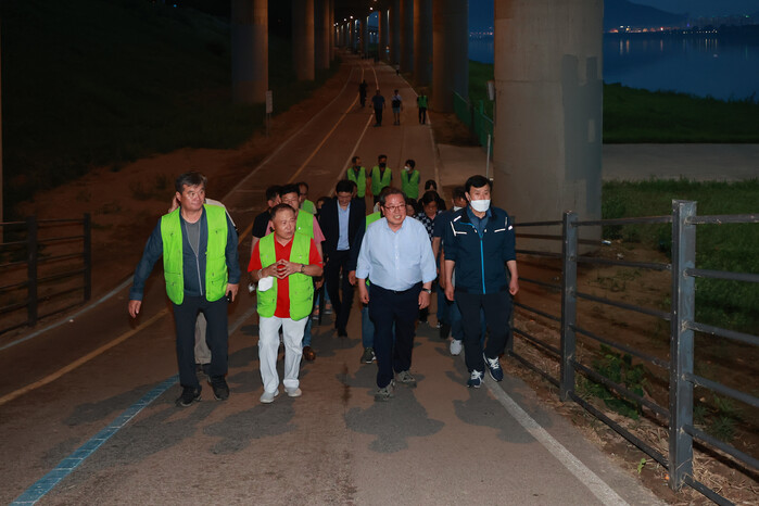 남양주시(시장 조광한)는 최근 다시 출몰이 빈번해진 동양하루살이 퇴치를 위해 총력을 다하는 가운데 26일 야간 현장 점검에 나섰다.