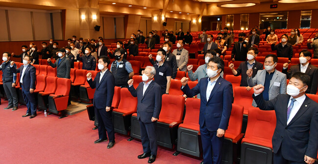 수원시 노·사·민·정 대표들은 21일 수원 권선구 경기종합노동복지회관에서 열린 노동절 기념대회에서 “재난상황에서도 사회기능과 일상생활을 유지하기 위한 필수업무 노동의 중요성을 인식하고, 필수노동자 보호·지원을 위한 제도를 구축하기 위해 노력하겠다”고 밝혔다.