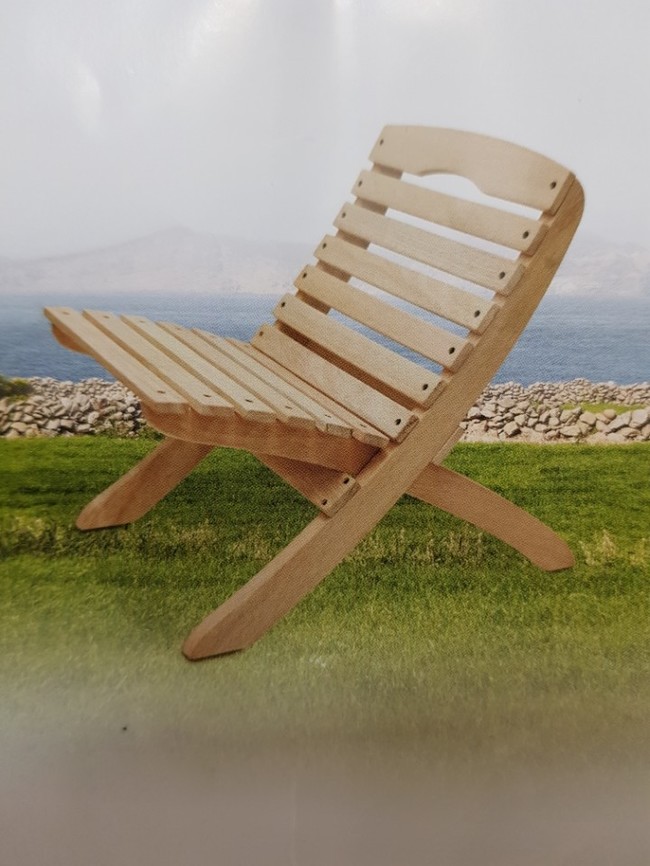 '조립식 원목 의자'(조립 시, 크기 445x340x480mm), (보관 시, 600x340x110mm)는 원목 재료를 사용하여 튼튼하고 고급스러운 제품으로 부피가 작고 간편하게 조립식으로 분리돼 있어 가정에서나 자동차 트렁크 등 보관 시에도 자리를 차지하지 않아 휴대하기 편리하며, 사계절 행사인 캠핑, 야유회, 낚시, 스키, 스케이팅, 각종 야외 행사 등에 편리하게 사용할 수 있다.