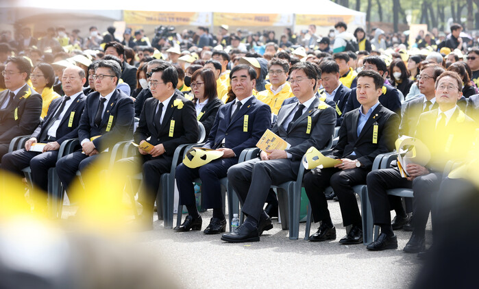 염종현 경기도의회 의장이 16일 안산 화랑유원지에서 열린 ‘세월호 참사 10주기 기억식’에 참석했다.