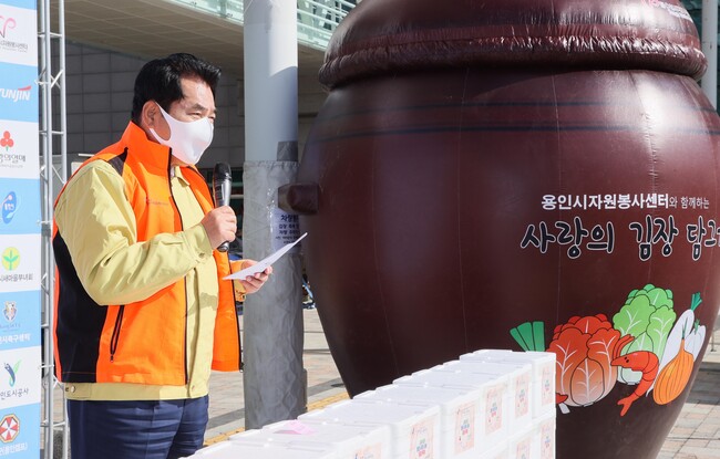 용인시의 최대 김장 행사인 ‘2021 용인 사랑 나눔 김장 축제’가 12일 용인시청 시청광장에서 열렸다.