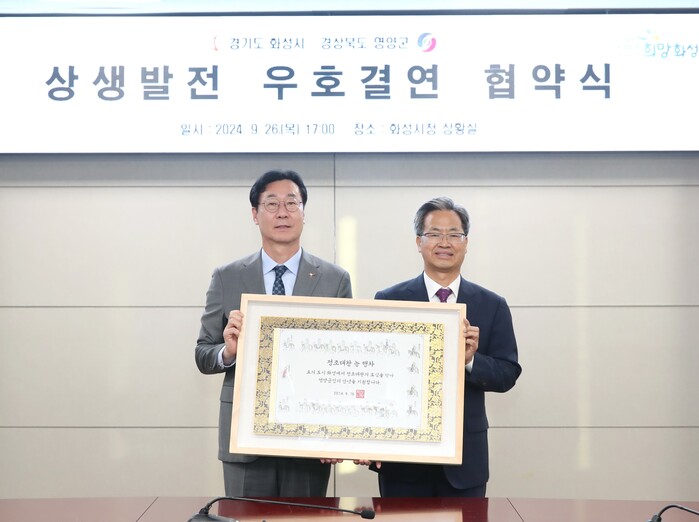 화성시(시장 정명근)와 경상북도 영양군이 26일 화성시청에서 우호결연 협약을 체결했다.