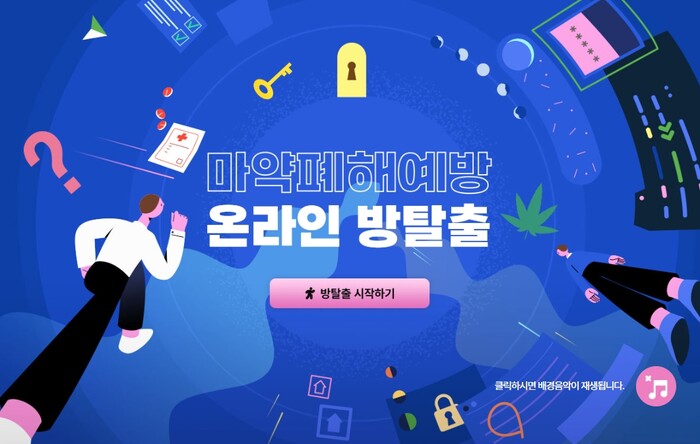 온라인 방탈출 캠페인은 독서실에서 잠든 상황을 가정하여 문이 잠긴 건물 안에서 밖으로 탈출하는 것이 목표로, 탈출을 위해서는 다섯 가지의 마약 관련 퀴즈를 통과 해야 하는 것으로 구현하였다.