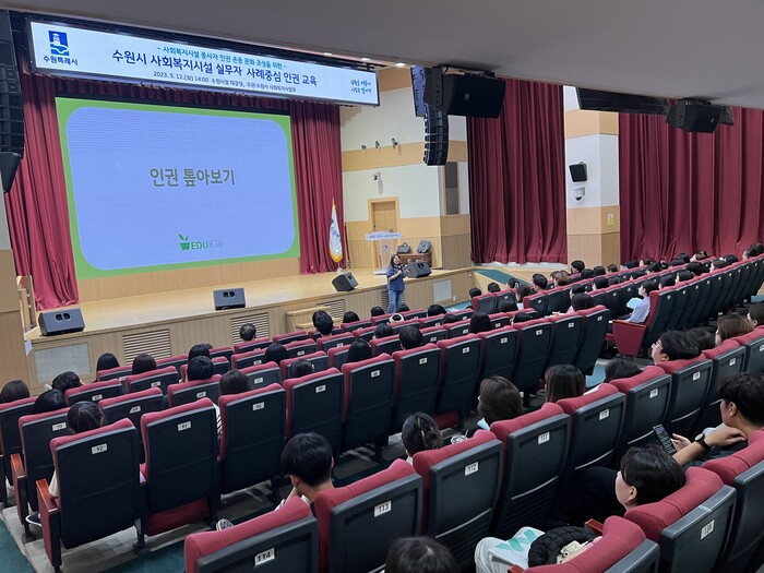 수원시가 11~12일 시청 대강당에서 사회복지시설 등 중간관리자·실무자를 대상으로 인권 교육을 했다.