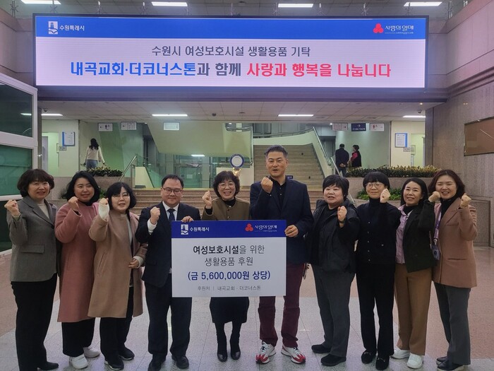 수원시 관계자는 “나눔을 실천해 주신 내곡교회와 더코너스톤에 감사드린다”며 “소중한 기부 물품을 수원시 여성보호시설에 잘 전달하겠다”고 말했다.