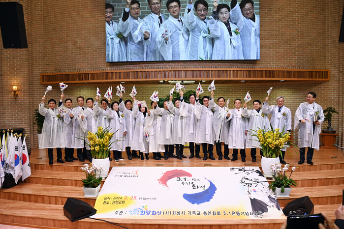 이날 행사에는 화성시의회 김경희 의장을 비롯해 유재호 의회운영위원장, 박진섭, 위영란, 명미정, 배현경, 전성균 의원이 참석하고 정광이 대표회장(화성시 기독교 총연합회), 김동주 교수(호서대학 대학원장) 등 내·외빈 약 150여명이 함께해 3.1 정신을 기렸다.