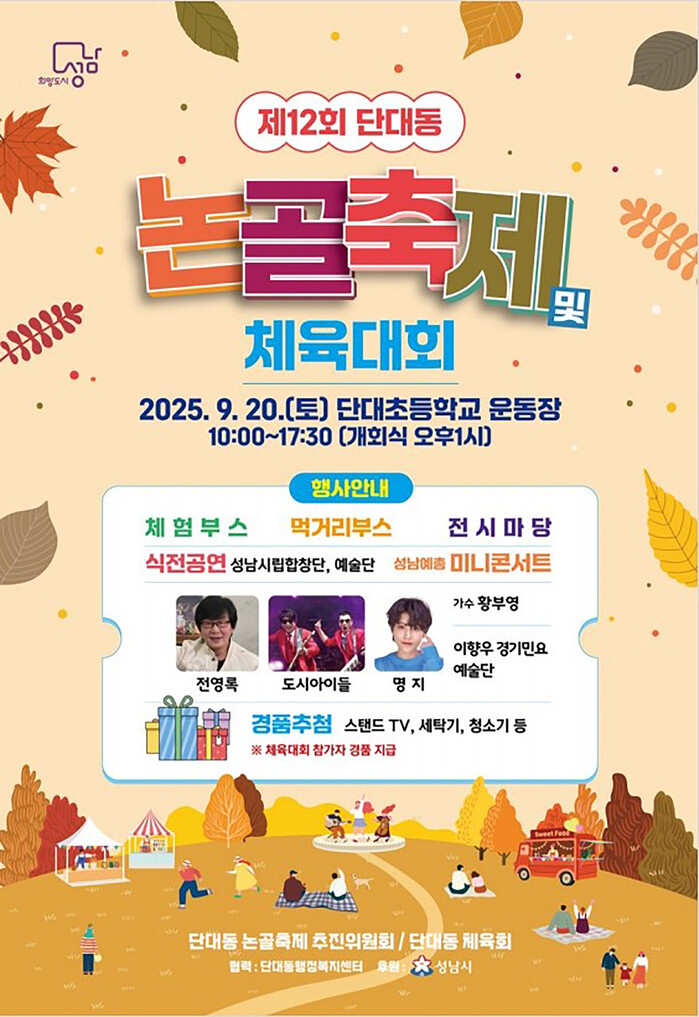 성남 소재 게임 기업 넥슨과 협업한 ‘성남페스티벌 × NEXON’은 9월 20·21일, 27·28일 분당구청 잔디광장과 희망대근린공원에서 진행된다. 메이플스토리와 카트라이더 러쉬플러스 등 인기 게임을 기반으로 한 체험 프로그램이 마련돼 세대를 아우르는 가족형 축제 공간으로 꾸며진다.