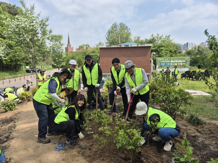 ‘천만 그루 도시숲 만들기 사업’의 하나로 진행된 이날 행사에는 수원심꾸기봉사단, 수원기후행동네트워크등 19개 단체에서 시민 100여 명이 참여했다. 에메랄드그린 등 관목과 초화류 15종 2539본을 심었다.
