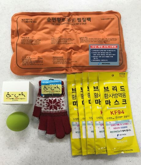 꾸러미는 황토 찜질팩, 실리콘 마사지볼, 보온장갑, KF94 마스크로 구성돼 있으며 용인시처인장애인복지관, 용인중앙장애인자립생활센터와 연계해 전달할 예정이다.