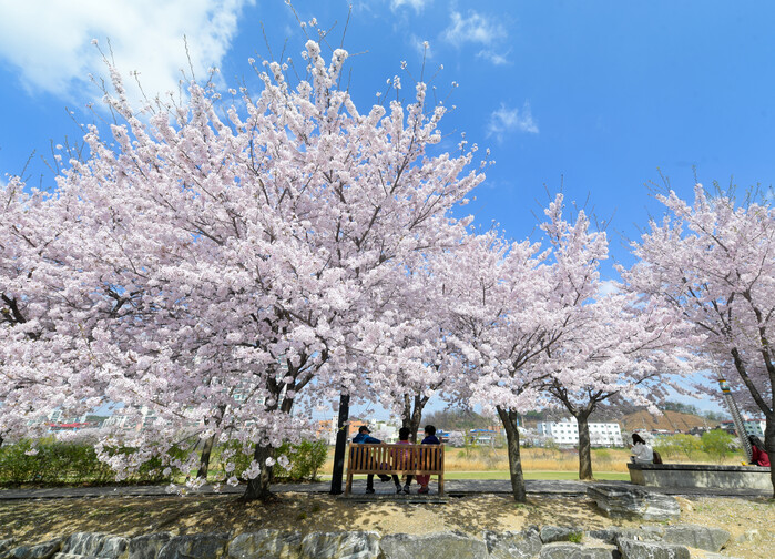 오산시는 포근한 날씨가 이어지고 있는 가운데 지난 주말(4월2일)부터 오산천에 흐드러지게 핀 벚꽃이 만개하여 시민들이 봄나들이를 한껏 즐기고 있다.