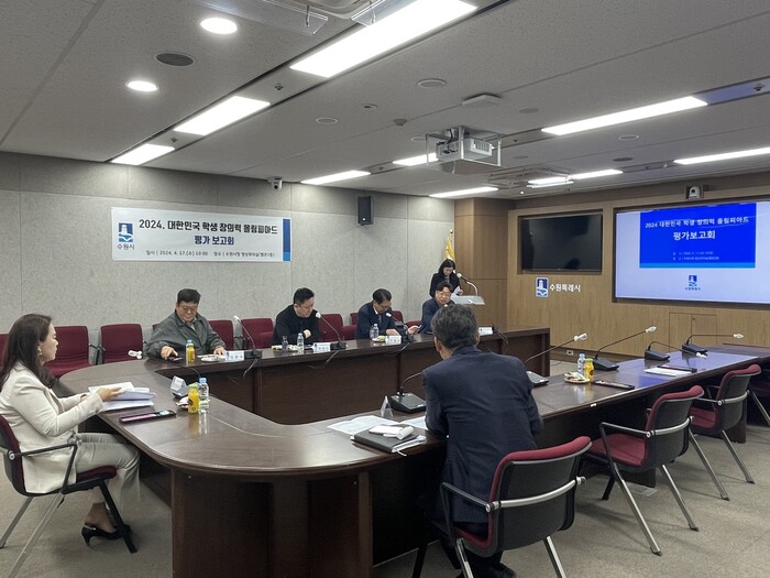 사진/수원시가 17일 ‘2024 대한민국 학생 창의력 올림피아드’ 평가보고회를 열고 있다.(사진제공=수원시)