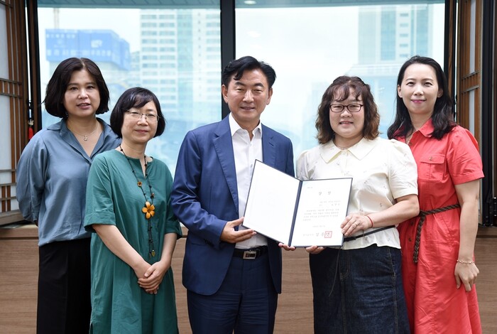 김동근 의정부시장은 7월 13일 제37회 경기여성 기·예경진대회 수필부문 대상 수상자 오경숙씨를 축하하는 자리를 마련했다. 시상식은 7월 7일 경기아트센터 대극장에서 제37회 경기여성대회 기념식 중 진행됐다.