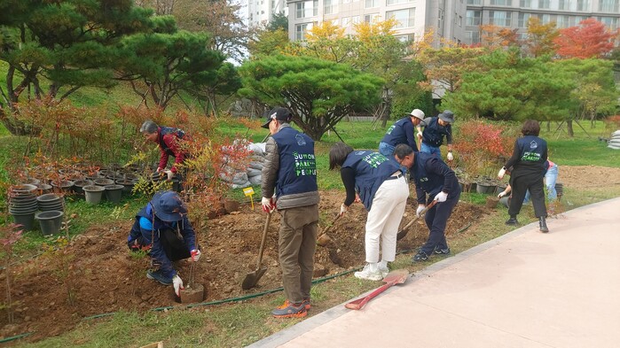 수원시의 후원으로 27일 기후행동 네트워크 등 수원시민 50여 명은 오목호수공원에 화살나무 100주, 남천 200주, 공조팝나무 100주, 낙상홍 60주, 무늬수호초 400본, 스텔라원추리 800본, 수선화 200구, 맥문동 3000본 등을 식재했다.