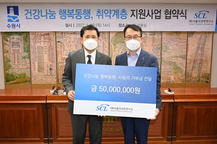 (재)서울의과학연구소가 “와상환자, 조손가정 등 취약계층 지원사업에 사용해 달라”며 수원시에 5000만 원을 기부했다.