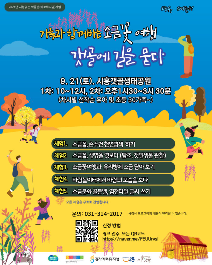 참가 신청은 온라인 큐아르(QR) 코드 스캔 또는 링크(https://naver.me/FEUUrvsI)로 하면 된다. 회당 각각 30가족을 선착순으로 모집한다. 자세한 사항은 시흥갯골사회적협동조합(031-314-2017)으로 문의하면 된다.