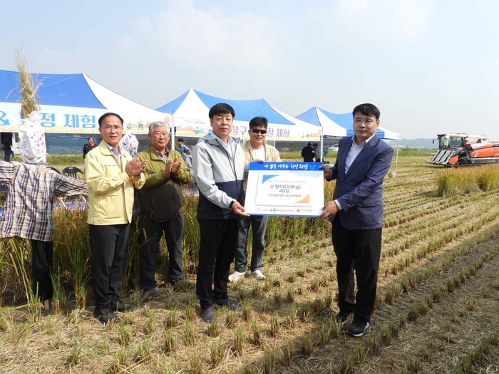 쌀전업농 화성시연합회는 8일 장안면 장안리 일대에서 ‘도시민과 함께하는 친환경 수향미 수확 체험’을 개최하고 수향미 400kg을 화성시에 기부했다