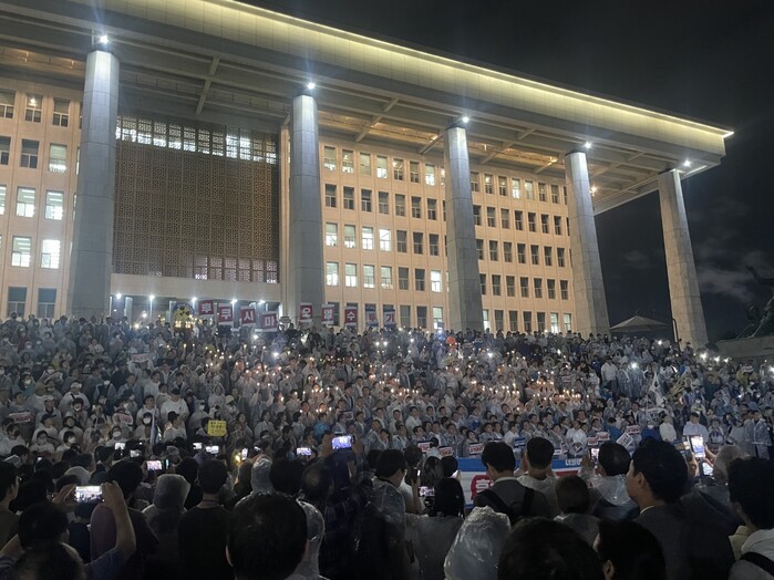 이날 촛불집회는 거센 비가 몰아치는 가운데 이재명 더불어민주당 대표를 비롯해 국회의원, 지방의원, 당원 등 1,000여 명이 모여 일본정부의 후쿠시마 핵 오염수 방류와 한국정부의 미온적인 대응을 규탄했다.