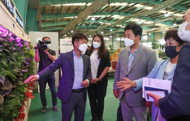 백군기 용인시장은 30일 처인구 남사면 소재 농업회사법인인 ㈜그리니쉬를 방문해 사회적 농업 활성화 교육 현장을 둘러보고 교육 수료생을 격려했다.