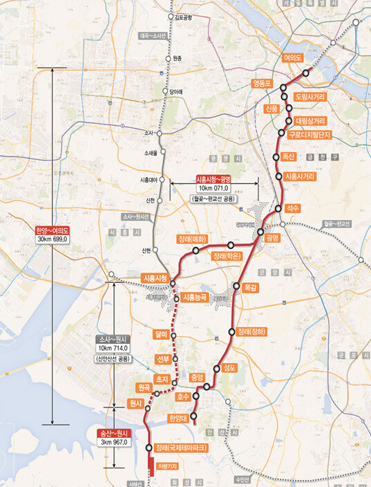 광명~시흥선은 KTX광명역을 출발해 광명.시흥 3기 신도시를 거쳐 서울지하철 2호선 신도림역과 연결을 목표로 하고 있다.