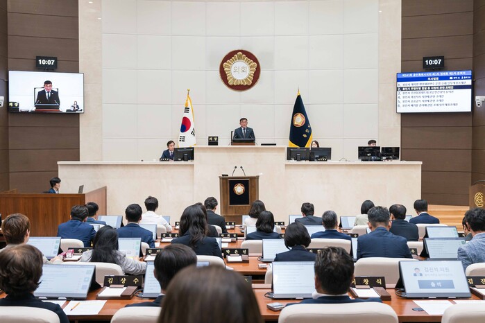 용인특례시의회(의장 윤원균)는 18일 본회의장에서 제283회 제1차 정례회 제2차 본회의를 열었다.