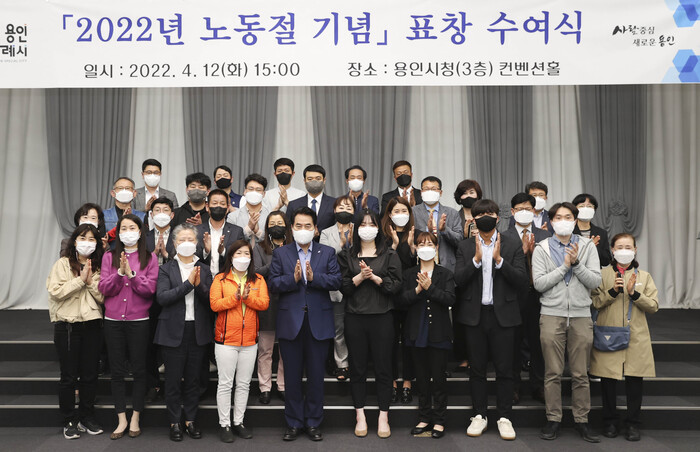 백군기 용인시장은 근로자의 날(5월 1일)을 앞두고 12일 시청 컨벤션홀에서 산업현장에서 근로자의 권리와 의무를 다하며 노사관계 안정을 위해 힘쓴 20명에게 표창장을 수여하고 격려했다.