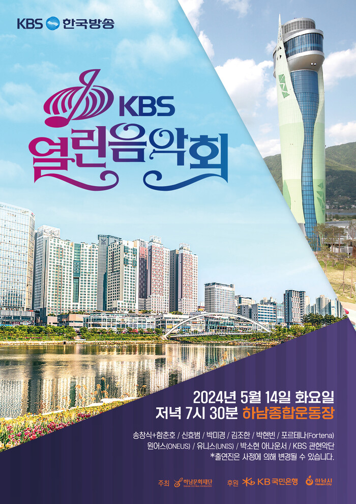 오는 14일 오후 7시 30분 하남시종합운동장 주경기장에서 진행되는 열린음악회는 시민 문화 향유 증대와 화합을 위해 하남문화재단이 주최하고 KBS가 주관하며, KB국민은행의 후원으로 마련된 행사이다.