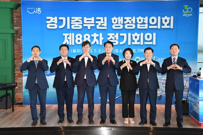 시흥시(시장 임병택)는 8일 거북섬에 있는 마리나썬셋에서 ‘제88차 경기중부권행정협의회’를 개최했다. 이번 회의에는 임병택 시흥시장을 비롯해 안산, 안양, 광명, 군포, 의왕, 과천 총 7개 회원 도시 단체장이 참석했다.