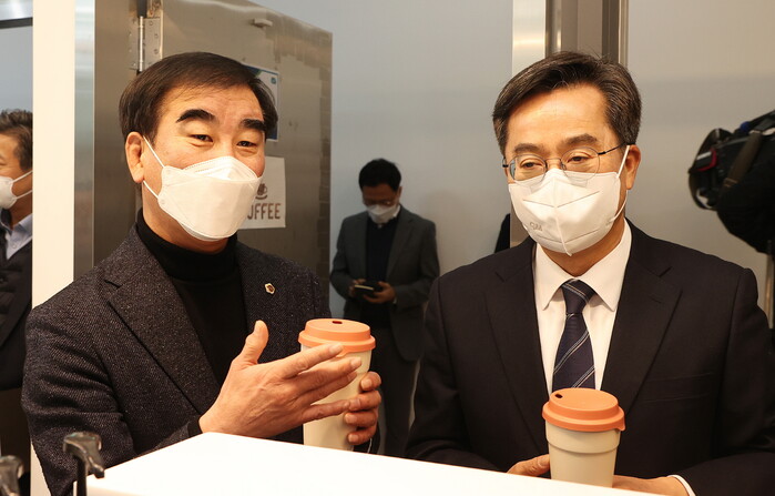 염종현 의장, 김동연 경기도지사 등 참석자들은 도청 카페에서 주문한 음료를 다회용 컵에 담아 마시며 수거함에 반납한 뒤, 업무협약을 맺고 플라스틱 제로화를 선포했다.