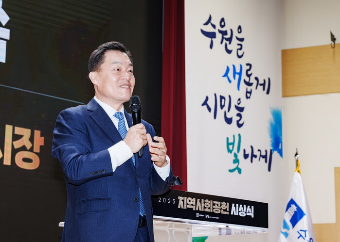 수원시는 27일 시청 대강당에서 ‘2023년 지역사회공헌 시상식’을 열고, 유공 기관·시민, 지역사회보장협의체 우수 위원·기관에 표창을 수여했다.
