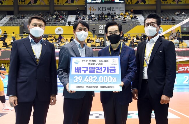 기부금은 지난 8월 개최한 2021 의정부·도드람컵 프로배구대회 유치 협약에 따른 배구발전기금으로 의정부 배구전용연습장 건립 관련 부대비용으로 사용될 예정이다.