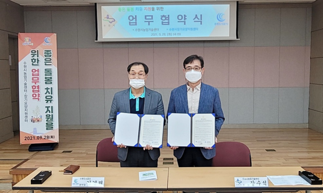수원시 농업기술센터와 수원도시공사(장기요양지원센터)가 돌봄대상 어르신과 장기요양요원을 대상으로 치유농업 프로그램을 추진하는 데 협력하기로 했다.