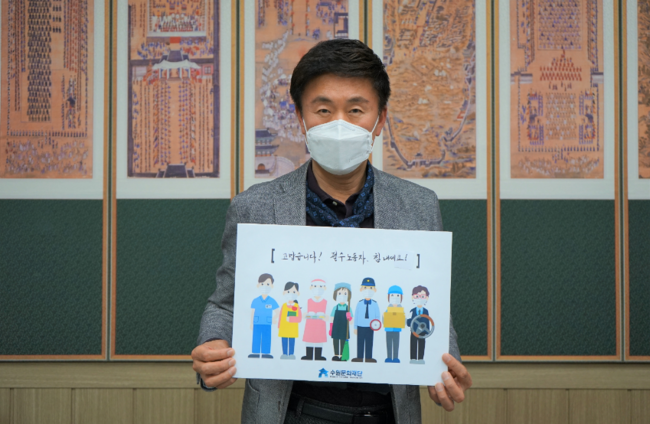 사진/길영배 수원문화재단 대표이사 ‘고맙습니다. 필수노동자’ 캠페인 동참(사진제공=수원문화재단)