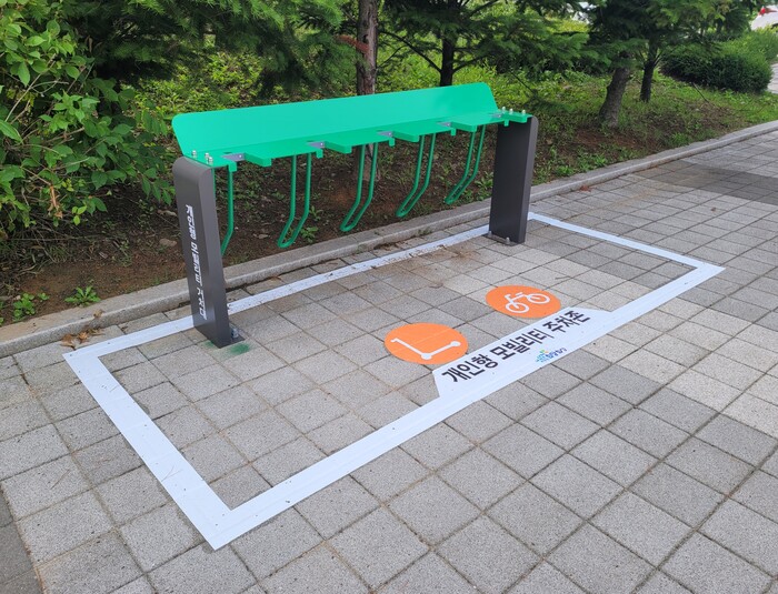 시는 지난 4월부터 민간업체의 개인형 이동장치(PM) 주·정차 위반 문제를 해결하기 위해 주차거치대와 주차라인 등 개인형 이동장치 전용 주차장을 설치하고 있다.