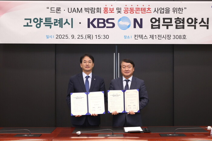 고양특례시(시장 이동환)는 지난 25일(목) 고양 킨텍스에서 KBS N(대표이사 이강덕)과‘드론·도심항공모빌리티(UAM) 박람회 홍보 및 공동 콘텐츠 사업을 위한 업무협약(MOU)’을 체결했다고 밝혔다.