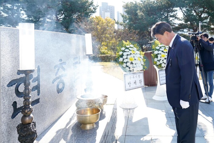 [로컬라이프] 송준형 기자 = 방세환 경기 광주시장은 17일, 현충탑, 3·1운동 기념탑, 호국유공자공적비가 위치한 경안근린공원에서 제84회 순국선열의 날 추모행사에 참석했다.
