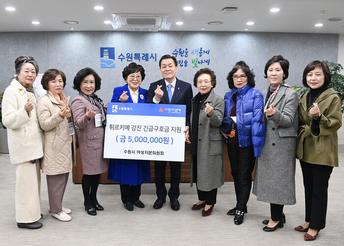 수원시여성자문위원회가 “지진으로 고통받고 있는 튀르키예에 전달해 달라”며 수원시에 500만 원을 기부했다.