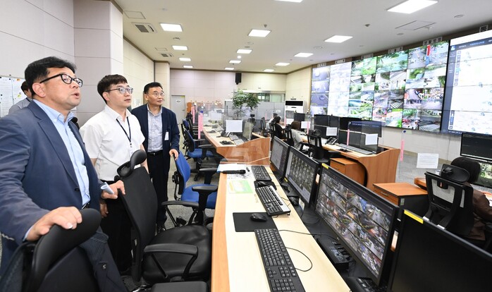 사진/김현수 제1부시장이 도시안전통합센터를 점검하고 있다.(사진제공=수원시)